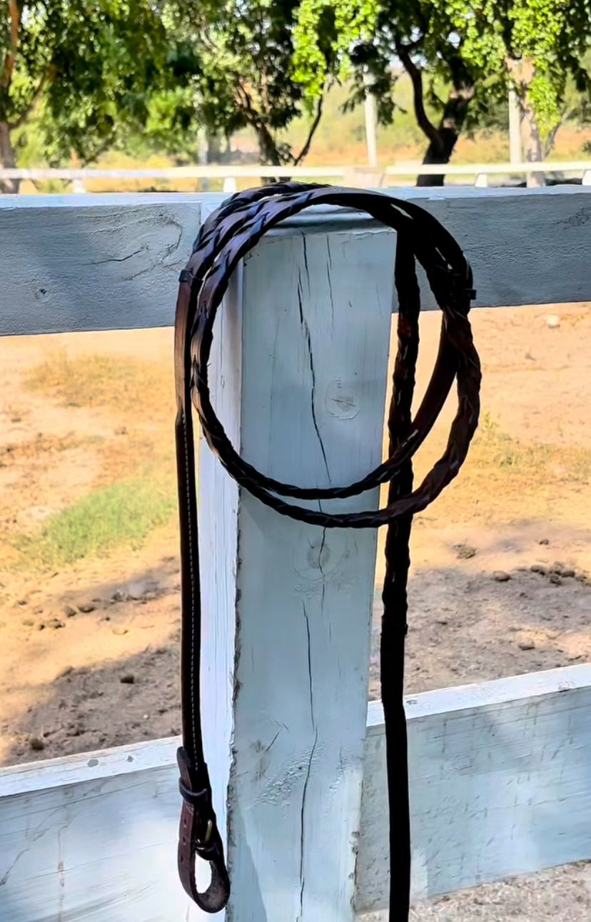 Está fabricada con materiales resistentes y flexibles que ofrecen un agarre firme y cómodo para el jinete. Su diseño trenzado proporciona mayor control, suavidad al tacto y una excelente durabilidad incluso en entrenamientos diarios.